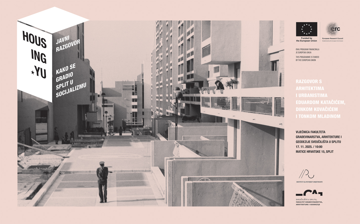 U organizaciji Instituta za povijest umjetnosti uz podršku Studija arhitekture i urbanizma Fakulteta građevinarstva, arhitekture i geodezije Sveučilišta u Splitu u ponedjeljak, 17. studenoga 2025. godine, s početkom u 10:00 sati, održat će se javni razgovor s arhitektima i urbanistima Eduardom Katačićem, akademikom Dinkom Kovačićem i Tonkom Mladinom.