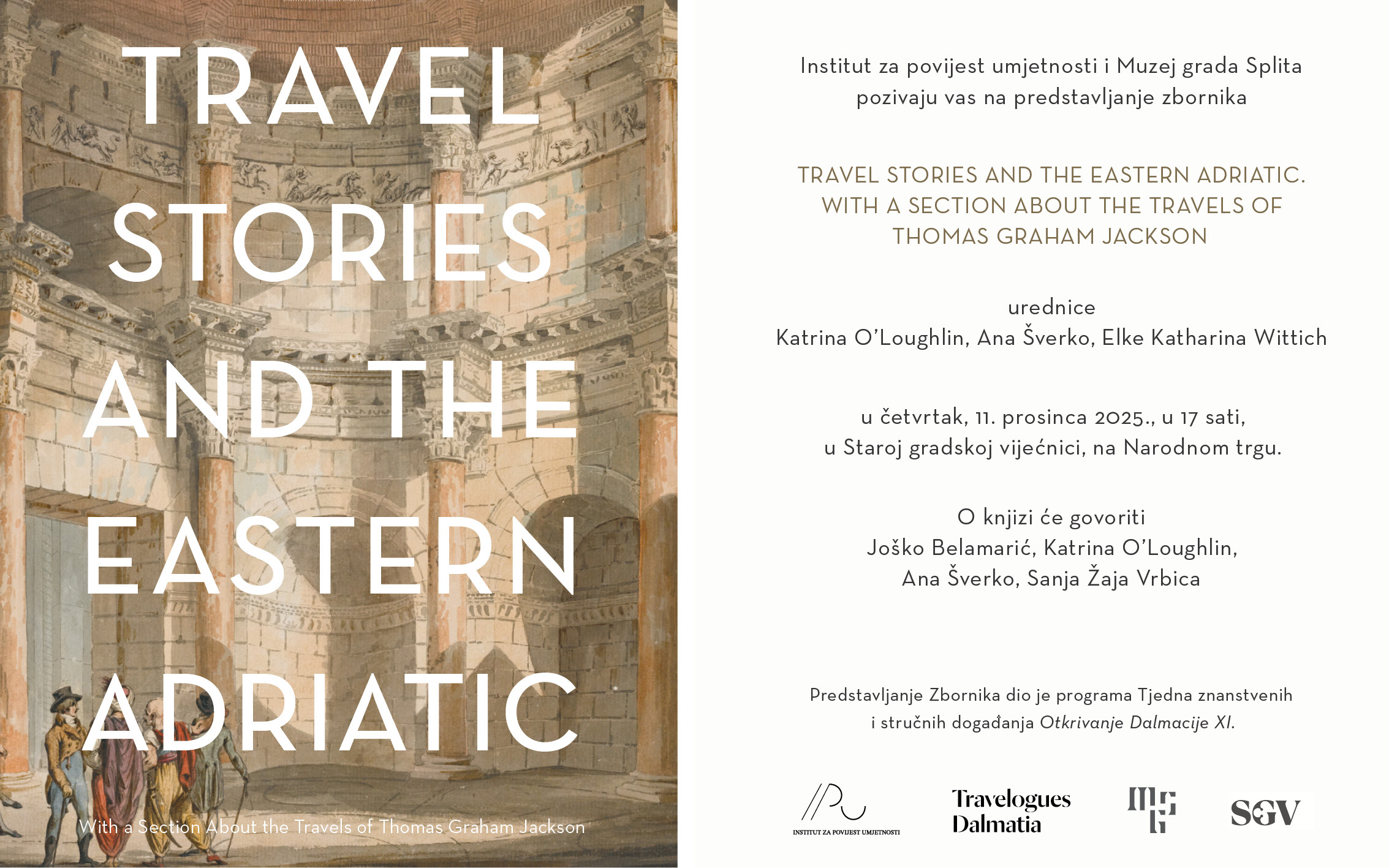 Predstavljanje zbornika Travel Stories and the Eastern Adriatic. With a Section About the Travels of Thomas Graham Jackson održat će se u četvrtak, 11. prosinca 2025. u 17 sati u Staroj gradskoj vijećnici na Narodnom trgu u Splitu.