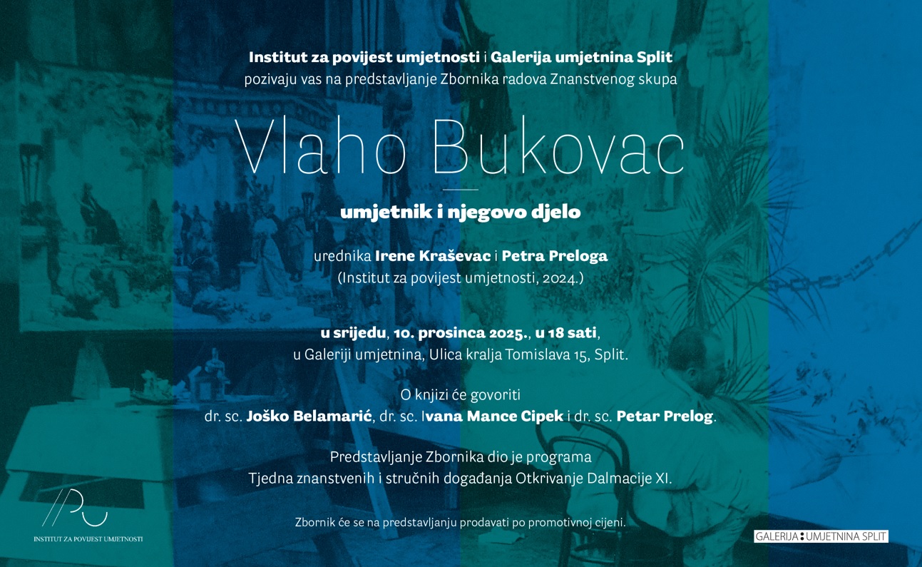 Predstavljanje Zbornika radova Znanstvenog skupa Vlaho Bukovac – umjetnik i njegovo djelo održat će se u srijedu, 10. prosinca 2025., u 18 sati u Galeriji umjetnina, Split.
