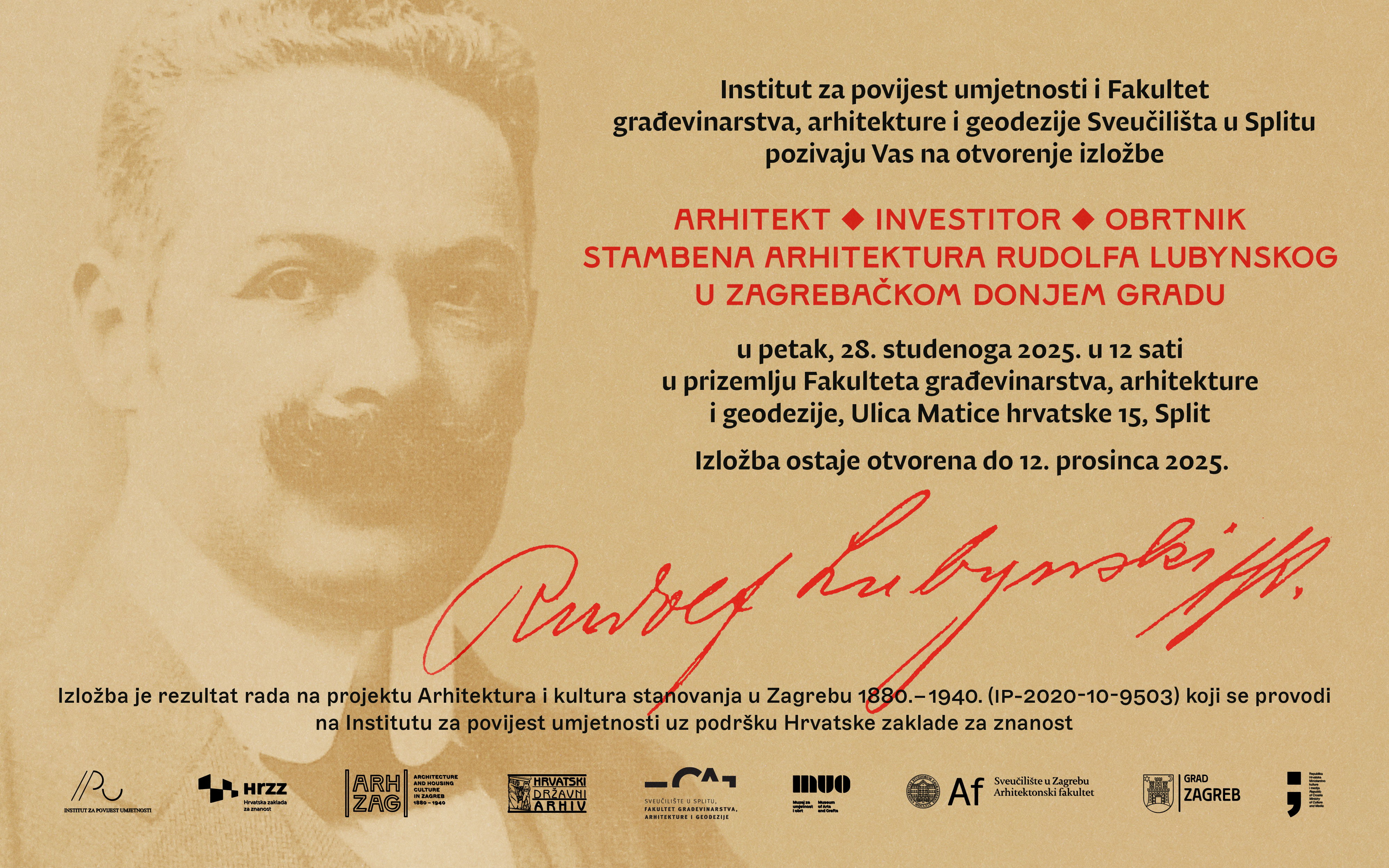 Izložba posvećena stambenoj arhitekturi Rudolfa Lubynskog u zagrebačkom Donjem gradu otvara se 28. studenoga 2025. na Fakultetu građevinarstva, arhitekture i geodezije Sveučilišta u Splitu.